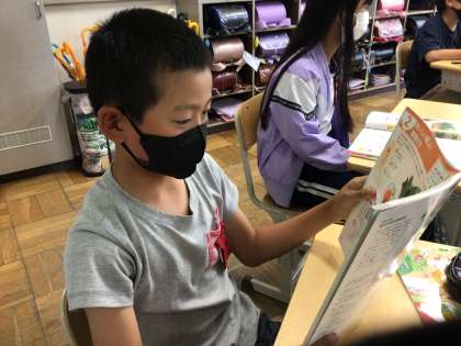 5年生は家庭科で調理について学んでいます。 調理の目的や手順を確認しています。