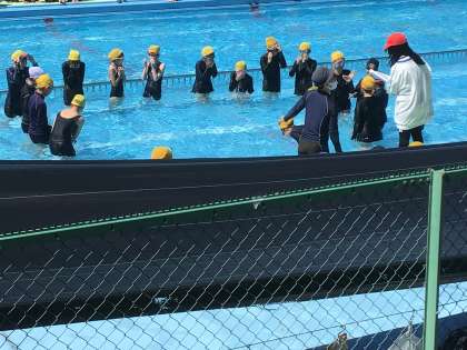 最後の写真は、土俵側のプールでプールの隅を歩いて渦を作っています。