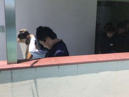 日陰でシャワー待ちです。