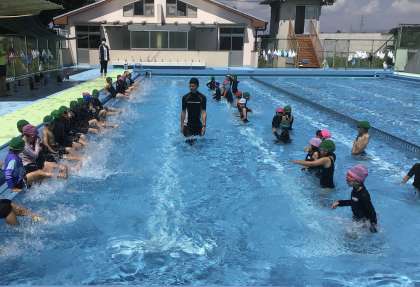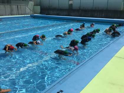 顔に水をかけたりしながら、頭まで水の中に入れられる子は入れてみました。