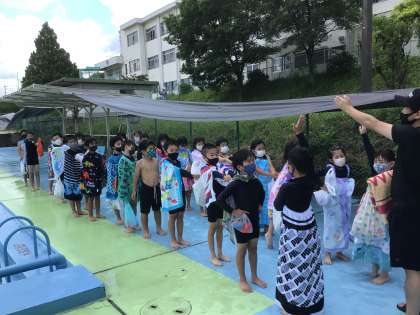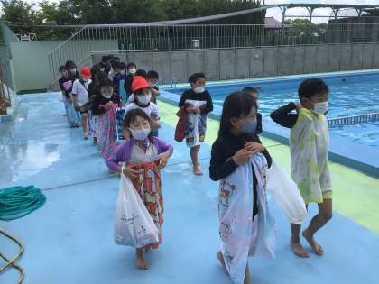 シャワーを浴びて、タオルで水をとり、整列して教室に帰ります。