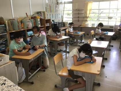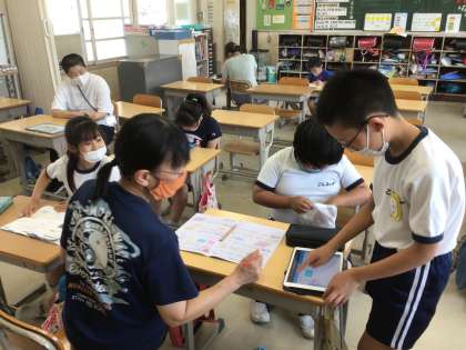 タブレットで個別学習をしています。