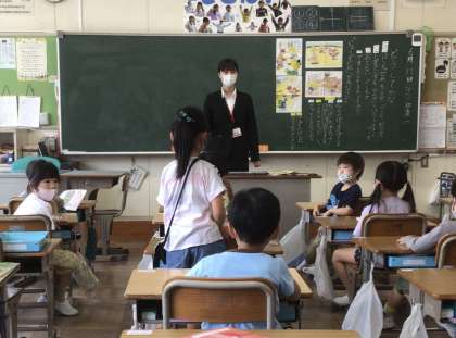 1年生の子たちは教育実習生の先生が大好きです。