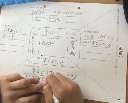 先生の選んだコウイカの整理をみんなでやってから、自分で選んだ生き物について整理しています。