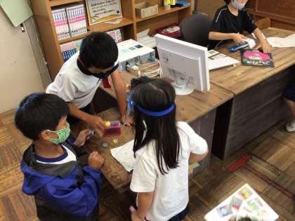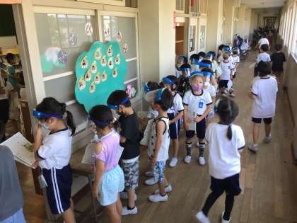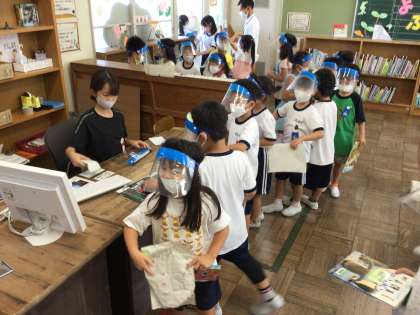 6月28日から始まった1年生にとって初めての図書館まつり。1冊借りると1つスタンプカードにハンコを押してもらえるのが楽しくて、毎日図書館に通う姿が見られます。たくさんの子が図書館に通うため、図書館の前には行列ができていました。この機会に、たくさんの本に親しんでほしいです。