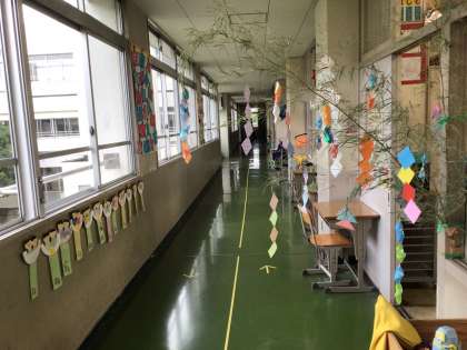 もうすぐ七夕まつりです。みんなで願い事を書いたり、折り紙で飾りを作ったりしました。願いが叶うかな。