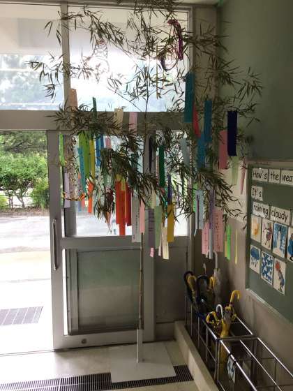 1年生は学校独自で七夕をかざりました。