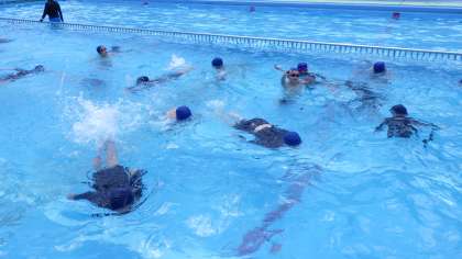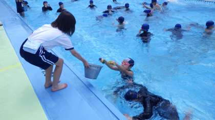 3年ぶりの水泳学習で最初は水に抵抗がある児童が多かったですが、児童それぞれ自分の目標に向かって一生懸命頑張っていました。