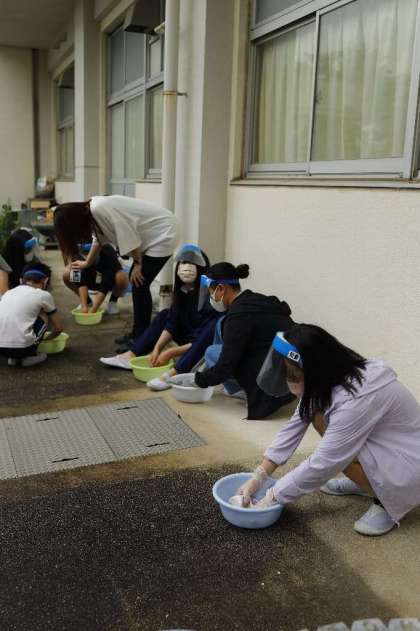 6年生「家庭科 手洗い洗濯体験」