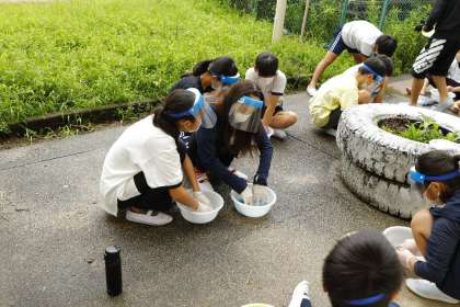 6年生の家庭科では、手洗い洗濯を体験しました。自分の履いてきた靴下を、もみ洗いやこすり洗い、つまみ洗いなどを駆使してきれいにしました。靴下を手洗いした桶の中の水を見ると、汚れが落ちていることが確認できました。これからは家庭科で学んだことを生かし、自分で手洗いするなど、少しでも家事の手伝いを頑張ってもらえたらと思います。