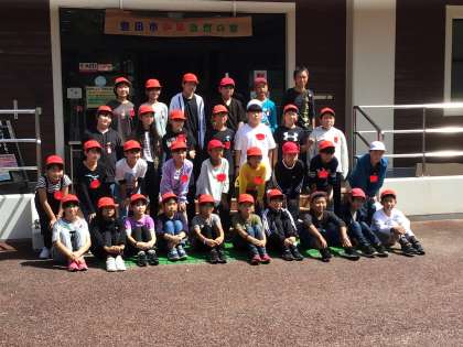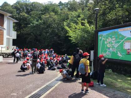 学級写真を撮りました。 この後は、フィールドアスレチックです。