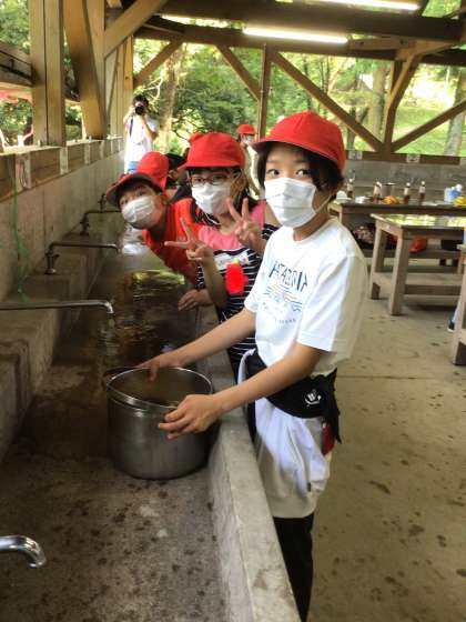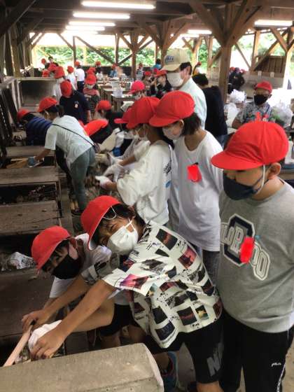 割ったまきで火を起こす準備が始まりました。 かまどの準備ok さあ、次は火起こしです。