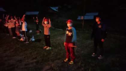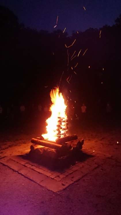 キャンプファイヤーが始まりました。 火が美しく燃えています。 実行委員が頑張っています。
