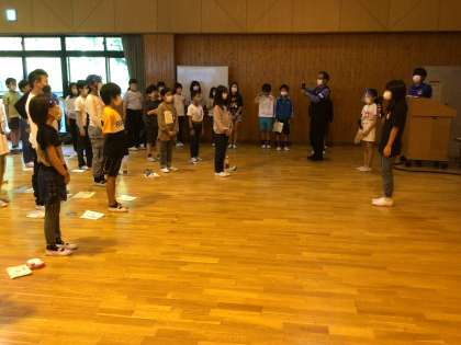 朝の集いが時間通りに始まりました。 ラジオ体操をしました。