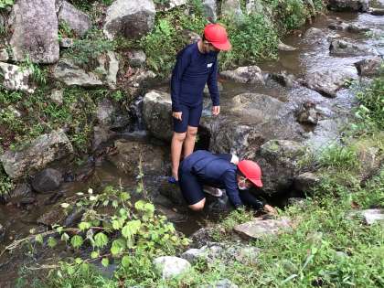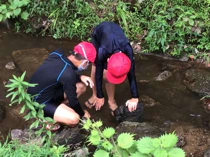 昼食をとった後は沢遊びです。