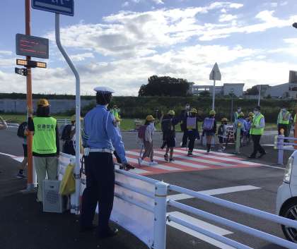 ただし、信号ではないので、そのまま走り抜けてしまうことがあるので、止まったかを確認してから渡ってください。