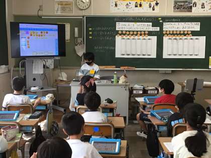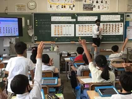 タブレットを使って学習しています。