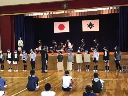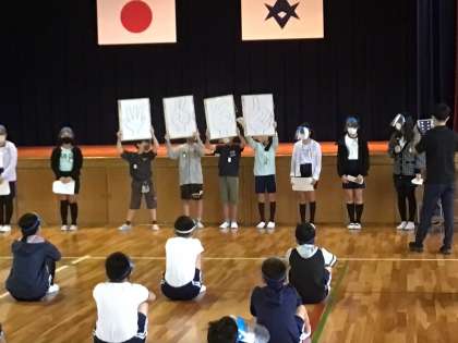 コミュニティー委員会は授業で頑張って手をあげようとよびかける劇と学習のきまりについて確認してくれました。