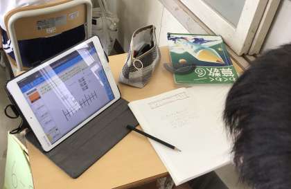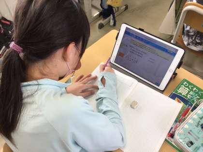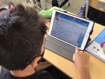 タブレット上で線分図を書いて答えを導いています。