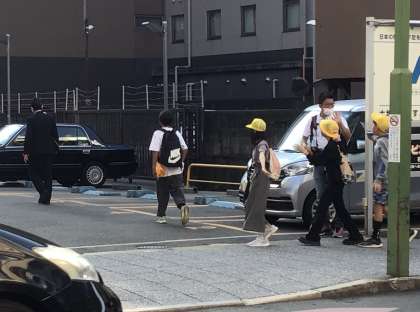 タクシーで班別行動です。 手を振って出かけました。 小清水小学校のこたちは本当にかわいいです。