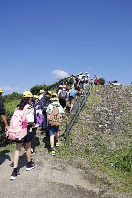 9月30日(金)、子どもたちにとっては、待ちに待った修学旅行へ出発しました。最初の目的地は、ナガレヤマ古墳。授業では古墳について学習していましたが、実際に見た古墳は思っていたよりも大きく、驚きと感心の声が子どもたちから聞こえてきまいた。