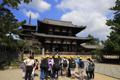第二の目的地は、法隆寺。聖徳太子が建立したとされ、現存する世界最古の木造建築というだけあって、歴史を感じる建物や有名な仏像に直接触れ合うことができ、とても貴重な経験ができました。
