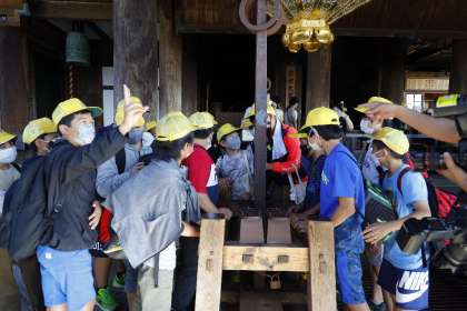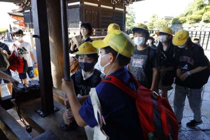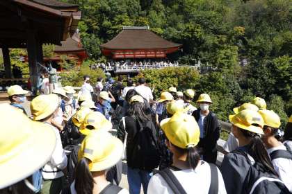 京都でのグループ活動では、しっかりと時間を意識して行動し時間までに、全ての班が集合でき、最高学年としての意識の強さを感じました。その後、昼食を食べ、清水寺を見学しました。清水の舞台は釘が使われていないことや舞台から見える景色のよさに感動していました。