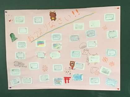 5年生から6年生へ 公開日 2022/10/06 更新日 2022/10/06 お知らせ 修学旅行2日目の帰りに、5年生から6年生に、お帰りのメッセージが用意されていました。 体育館には「おかえりなさい」のメッセージが体育館前に掲示されてありました。 そして、各教室にも5年生一人一人のメッセージが掲示されてありました。 5年生のみなさん、ありがとうございました。 5年 6年