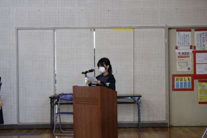 10月11日(火)、後期始業式の中で「理想の6年生像」を各クラスの代表児童が発表しました。修学旅行を終えて、自分たちで作り上げることができた部分や力が足りなかった部分を振り返り、どんな6年生になるのか具体的な目標をイメージしていました。卒業まで残り半年。理想を達成できるよう、日々意識して生活してもらいたいです。