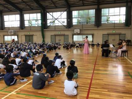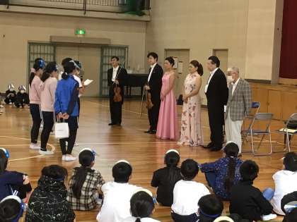 10月17日の様子 公開日 2022/10/18 更新日 2022/10/18 お知らせ こんかいの音楽鑑賞会はビオラ、バイオリン、チェロの弦楽四重奏です。 「マリア」や「アンダンテ・カンタービレ」などを演奏していただきました。 そして、ミュージカルに出演してみえる横関さんが「私のすきなもの」「ドレミの歌」などを歌ってくださいました。 子どもたちはききほれていました。 最後にお礼の言葉を述べ、お礼の品を渡しました。 18日の中日新聞にのりました。 5年 6年 特色ある活動