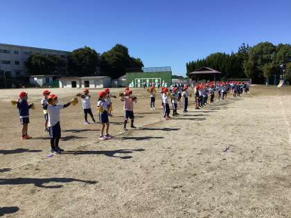 2年生の運動会練習の様子です。今日は、当日に行うポンポンをつけて通し練習をしました。元気いっぱいにダンスを踊っていました。自分も見ている人も笑顔にできるダンスを披露するため、運動会までの残り少ない期間、練習をしていきます。