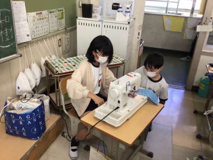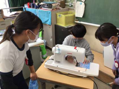 5年生では、家庭科の学習でミシンの学習が始まりました。