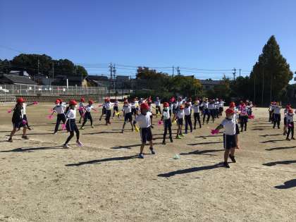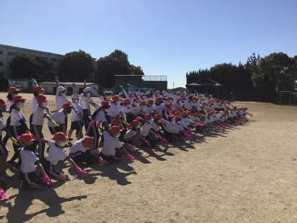 1限の体育館練習で上手になった演技を、運動場でもしっかりと演じようとする姿が見られました。