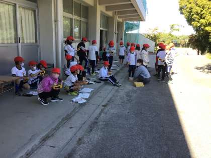 3年生が理科の授業で外に出てきました。