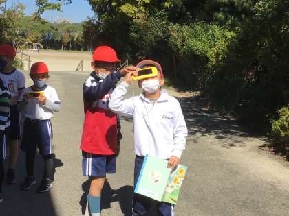 遮光レンズで太陽を見ています。