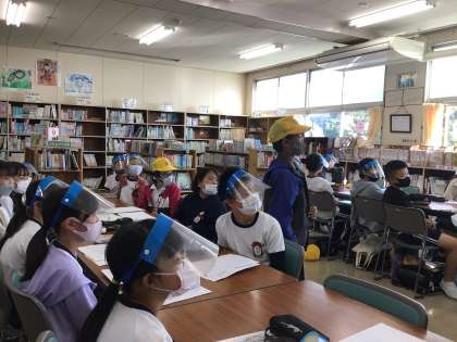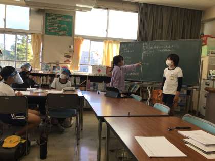 この写真は、ライブラリー委員会の様子です。5年生が進んで話し合いに参加していて、担当の先生から、「5年生すごいね」と褒めていただきました。