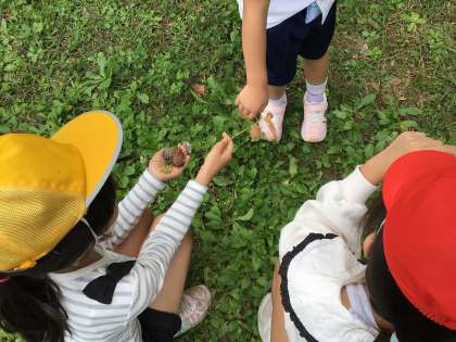 トヨタの森での自然体験学習を控えて、小清水小学校の校庭でも秋の自然と触れ合いました。赤、黄、茶色の葉っぱを探しました。校庭の木の葉も、ずいぶん色づいてきたことに気付きました。きれいな葉っぱをたくさん見つけました。どんぐりはまだ緑色。拾えるまでまだ時間がかかりそうです。