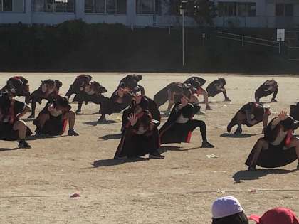 3年生の子が「ピシピシ動いていて、指の先まで力が入っていてさすがだなあと思った。どっこいしょのところが深くてすごかった。あんな6年生になりたい」、5年生の子が「明るく楽しい曲に合わせたダンスで楽しそうに踊っているから、自分も楽しくなった。後半のソーランは一つ一つの動きが大きくて迫力があった。6年生最後の運動会にふさわしい演舞だった」と言ってました。
