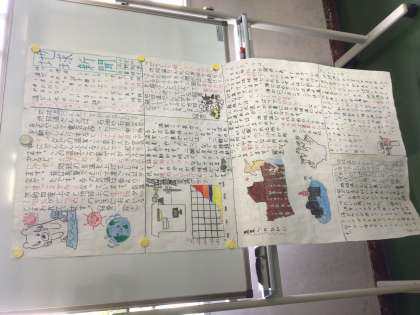 同じテーマでも分担して原稿を書き、つないで1まいの壁新聞にするようです。