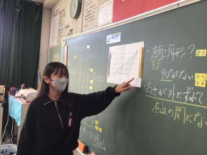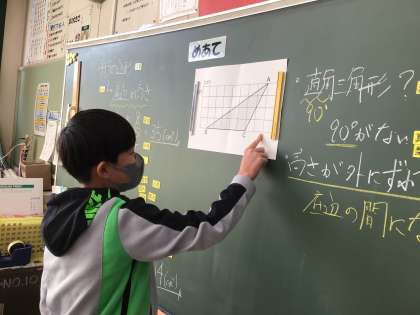 11月7日(月)に、5年1組と5年2組では、高さが外にある三角形や平行四辺形の面積を求める学習を行いました。底辺と高さの位置関係を確認しながら、面積を求めることができました。