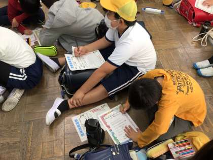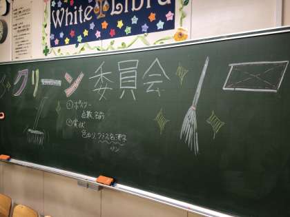 この写真は、クリーン委員会の活動の様子です。12月にある清掃強調週間の準備を行いました。