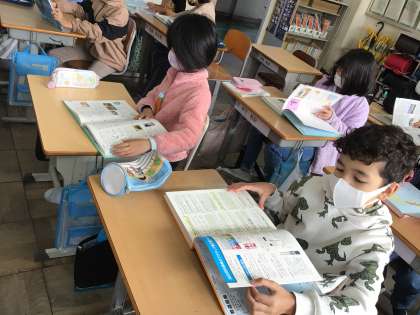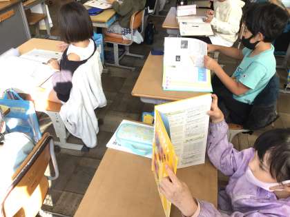 3年生では国語科で、ポプラディア(百科事典)の使い方を司書の先生に教えていただきました。索引や目次を見ながら、いろいろな言葉を調べました。