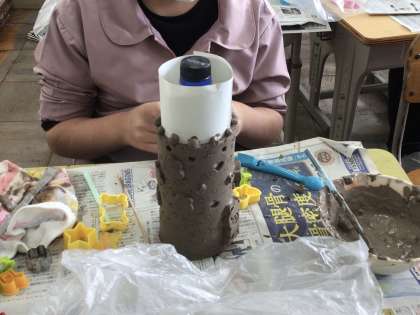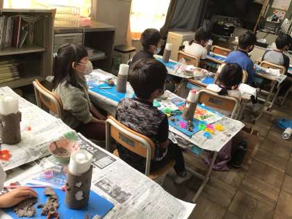 3年生図画工作科では、粘土を使ってランプシェードを作りました。粘土を丸めたり、模様を付けたりしました。