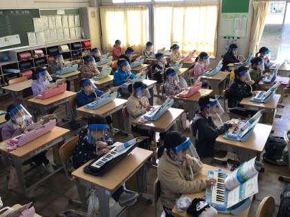 2年生の音楽では、鍵盤ハーモニカを使ってかえるの合唱や山のポルカの練習をしています。正しい指使いで弾くことができるよう、綺麗な音色で演奏できるよう一生懸命練習をしています。