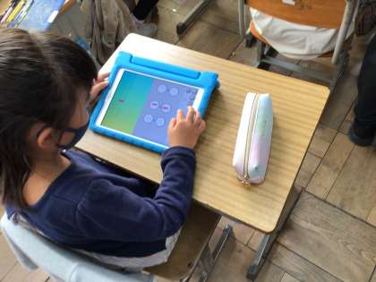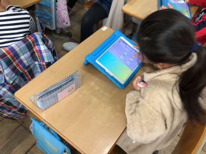 プログラミングアプリのビスケットを使った授業を行いました。魚を左に動かすプログラミングを教えた後、ジグザグに動かすプログラミングを自分で考えました。「できないなぁ」「変な方向へ行ってしまう」そんな声もしましたが、諦めずに考え続けることで、少しずつできる子が増えてきました。プログラミングを通して、粘り強く考えることができるようになって欲しいです。
