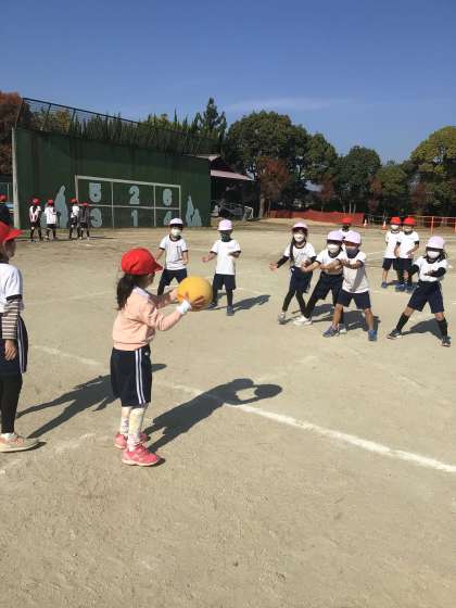 1年 体育科「ボール投げ遊び」 公開日 2022/11/12 更新日 2022/11/12 お知らせ ゲットボールというドッジボールの前段階ゲームをしました。 内野の子が外野から投げられたボールをキャッチできたら、得点になるというルールです。 ボールに当たらないように逃げていた子も、ボールを受けようと構える事ができる様になりました。 また、チームごとに作戦会議をして、どうしたらキャッチされないようにできるか、どうしたらキャッチできるかを話し合うこともできました。 1年