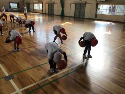 5年生の体育科では、体育館でバスケットボールの学習を行っています。