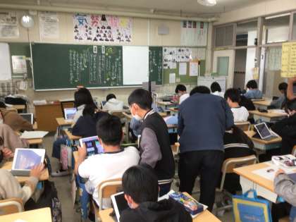 11月11日の様子 公開日 2022/11/12 更新日 2022/11/12 お知らせ 6年生の国語の授業です。 「授業は学校で受けるのがいいのか、リモートで受けるのがいいのか」という話し合いをするために、自分の考えの根拠や反対意見に対する意見をまとめています。タブレットで根拠となる考えや反論するための根拠のヒントを調べています。 6年