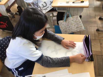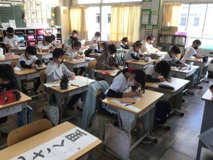 4年生の習字の授業です。