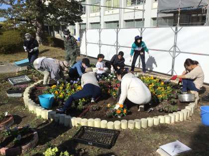 メイン花壇にパンジーやアリッサム、金魚草、ビオラなどが植えられました。